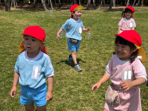 公園ではシャボン玉をしたり、走って元気いっぱい楽しみました!!