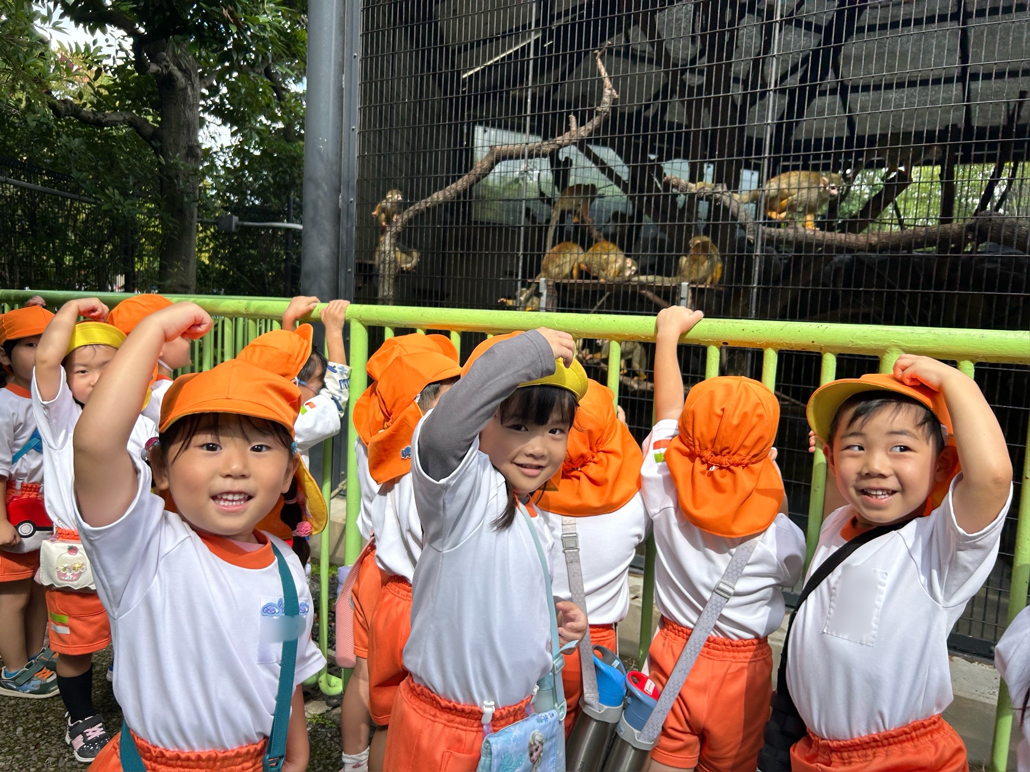 おさるさんたちの前で はい!ポーーズ📷✨🐒