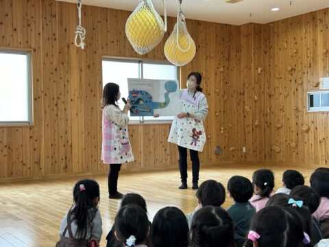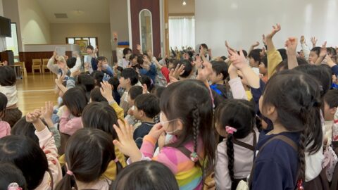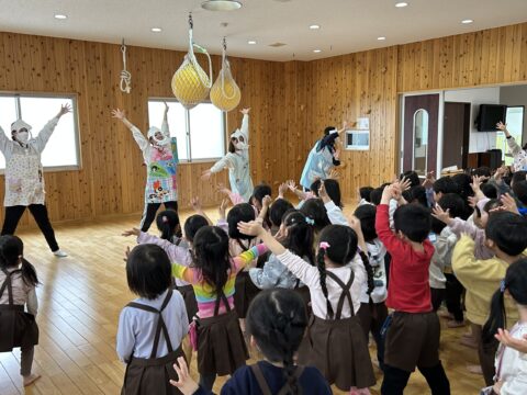 今日は、たんぽぽ組さん・年少組さん・年中組さんで