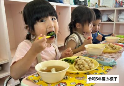 - 給食からのおいしそうなにおいに、お腹もペコペコです。